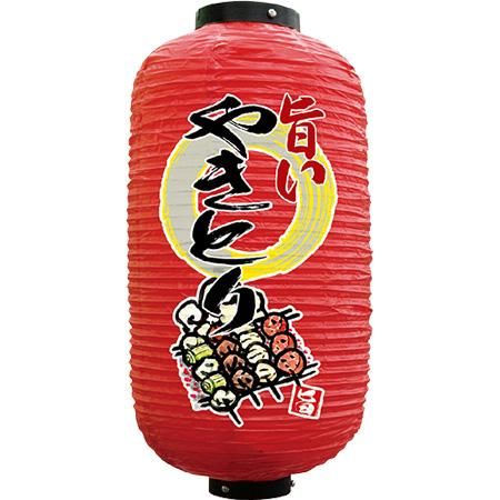 25508 九号長フルカラー赤提灯 やきとり 1面タイプ 素材:ビニール製 サイズ:φ240mm×H520mm