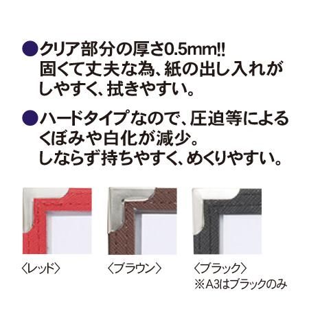 ハードクリアテーピングメニュー A4 6ページ (レッド/ブラウン/ブラック)